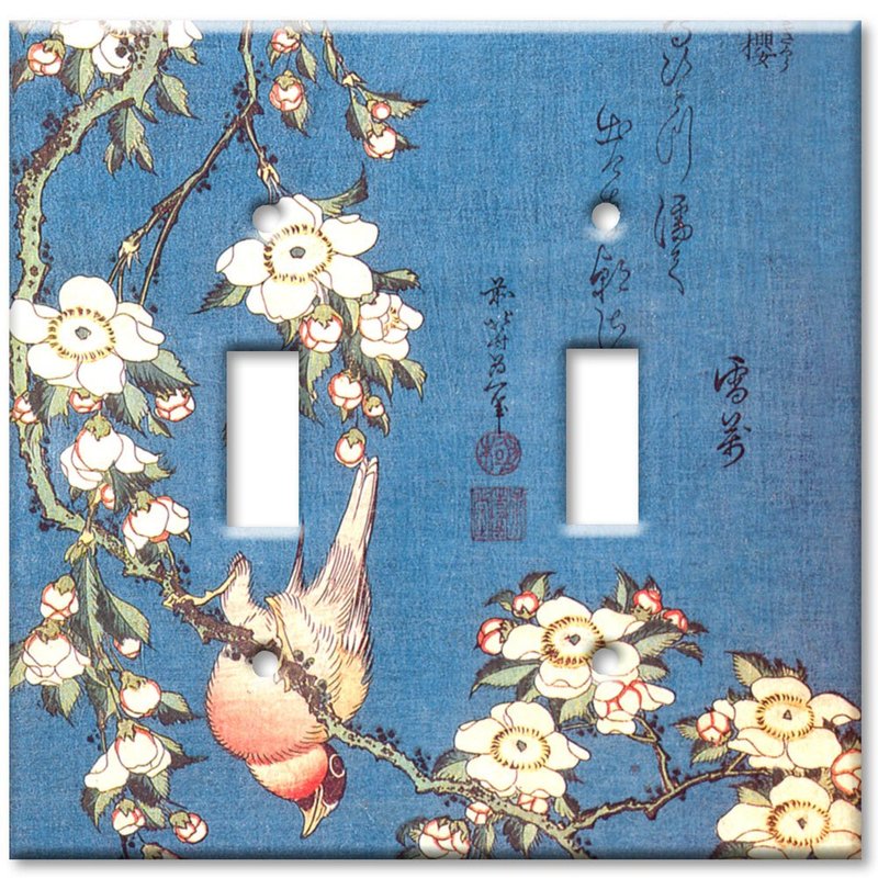 - Art Plates Brand Decorative Printed Double Gang Toggle Switch Plate - Hokusai: Weeping Cherry and Bullfinch