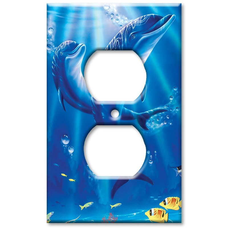 Art Plates - Outlet Cover OVERSIZE Switch Plate - OVER SIZE Decorative Metal Wall Plate - Sunlit Dolphins - (Made in USA)