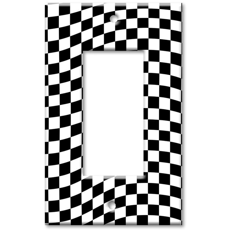 Art Plates - Single Gang Rocker OVERSIZE Switch Plate - OVER SIZE Decorative Metal Wall Plate - Checkered Flag - (Made in USA)