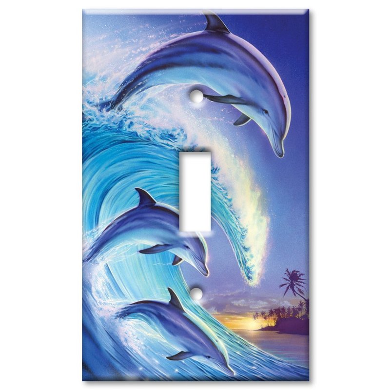 - Art Plates Brand Decorative Printed Single Gang Toggle Switch Plate - Dolphins in the Wave
