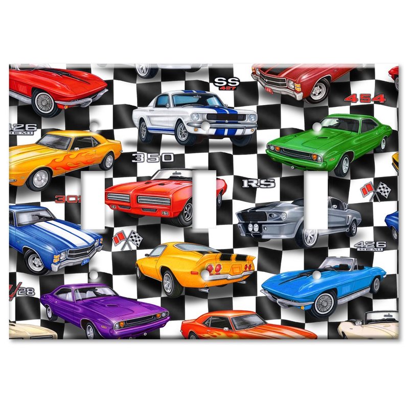- Art Plates Brand Decorative Printed Triple Gang Toggle Switch Plate - Muscle Cars - Image by Dan Morris