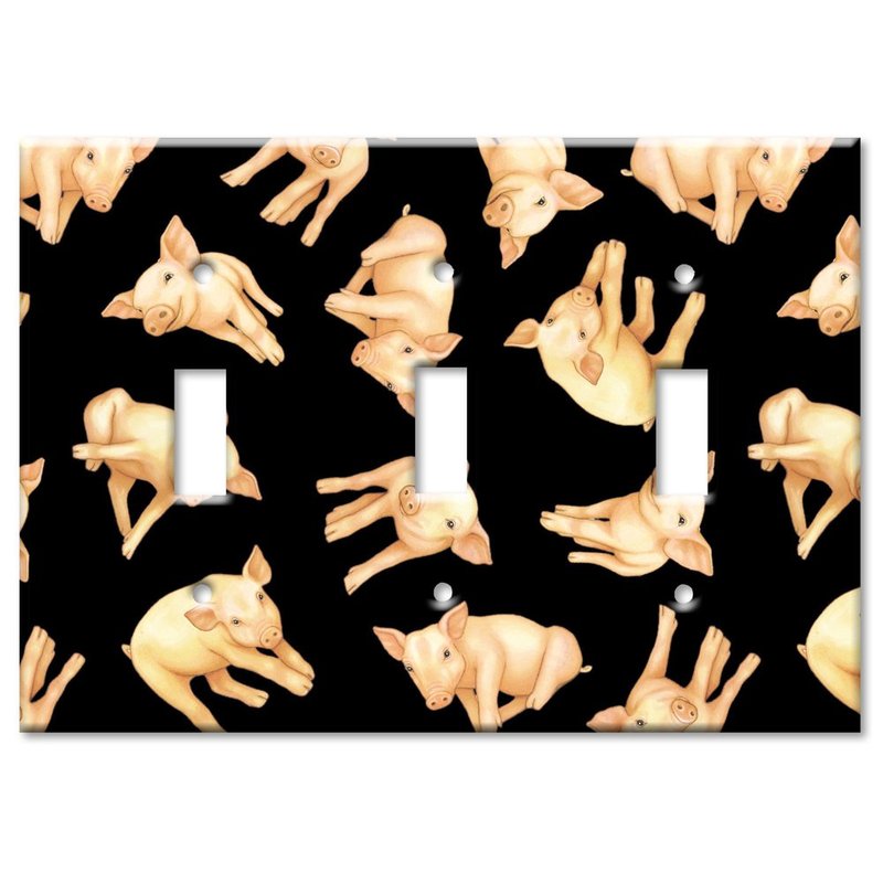 Art Plates - Triple Gang Toggle OVERSIZE Switch Plate - OVER SIZE Decorative Metal Wall Plate - Piglets - (Made in USA)