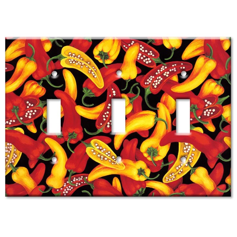 Art Plates - Triple Gang Toggle OVERSIZE Switch Plate - OVER SIZE Decorative Metal Wall Plate - Red and Yellow Peppers - (Made in USA)