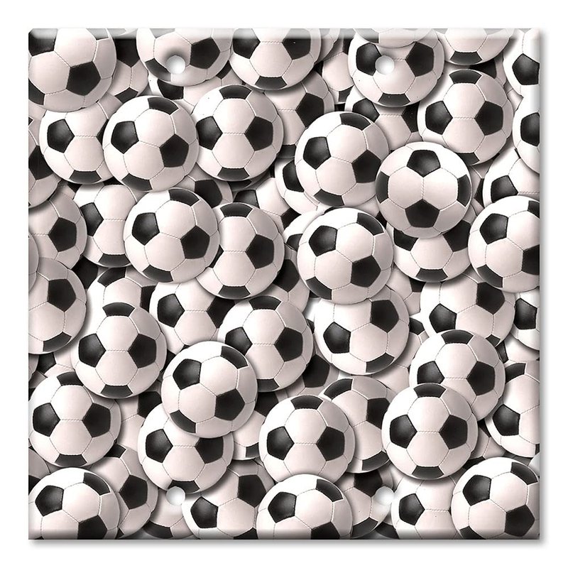 MADE IN THE USA: 2 gang over size Blank Switch Plate Cover - With Sports: Soccer Balls image printed on a solid metal switch plate. Art Plates switch plates and outlet covers are created using a special, high resolution, ultra violet printer that prints directly on our American made, heavy duty, metal switch plates. There simply are no other decorated switch plates available that can compare to the richness of color and resolution that Art Plates can achieve. Every oversized switch plate has a final UV cured high gloss finish. This creates an extremely durable shiny finish that also helps protect it from abrasions and scratches. Every oversized switch plate comes beautifully and professionally packaged in see-through blister packaging and are great for gift giving. Color matched screws are included. All of our items are made in the USA.
