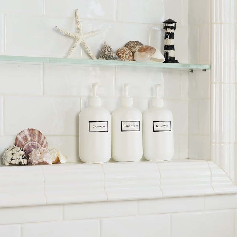 Mismatched bottles in the shower are an eyesore! This set replaces store-bought packaging for a cohesive, designer look and clutter-free shower.