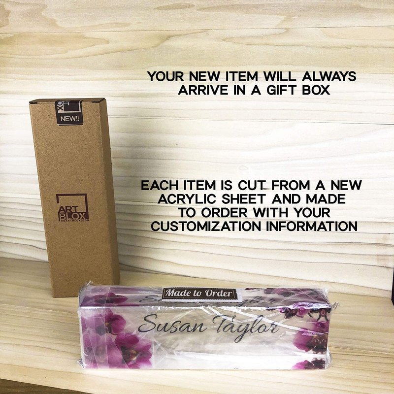 Artblox Office Desk Name Plate Personalized | Custom Name Plates for Desks on Acrylic Glass Decor | Office Desk Decor Nameplate | Desk Accessories | Black Stripe - (8" x 2.5")