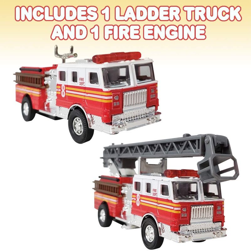 ArtCreativity 5.5 Inch Toy Fire Trucks - Set of 2 - Pull Back Firetruck Toy Cars for Boys and Girls - Includes Metal Ladder Truck and Fire Engine - Best Birthday Gift for Kids, Toddlers