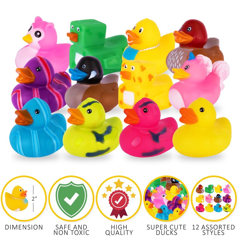 - ASSORTED DESIGN AND STYLE: These duckies come in a variety of sizes and styles, including rubber ducks, rubber duckies with wings, and rubber duckies with different colors and patterns. There is something for every child's taste and preferences.