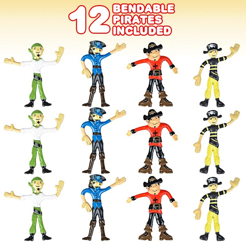 ArtCreativity Bendable Pirate Figures, Set of 12 Flexible Men, Birthday Party Favors for Boys & Girls, Stress Relief Fidget Toys for Kids and Adults, Goody Bag Stuffers, Piñata Fillers