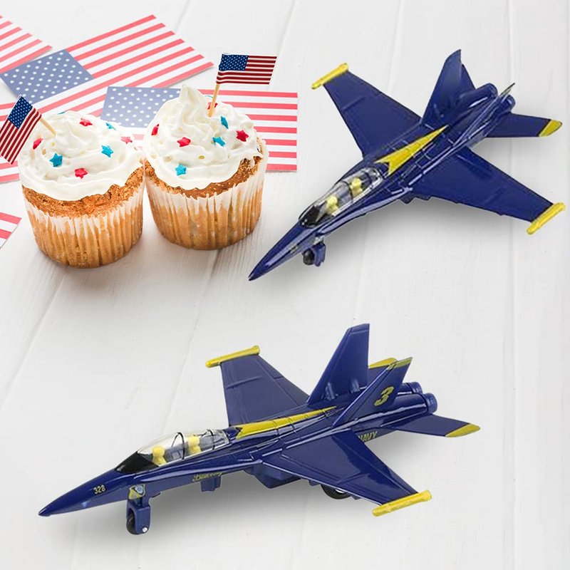 ArtCreativity Diecast F-18 Blue Angel Jets with Pullback Mechanism, Set of 2, Diecast Metal Jet Plane Fighter Toys for Boys, Air Force Military Cake Decorations, Aviation Party Favors