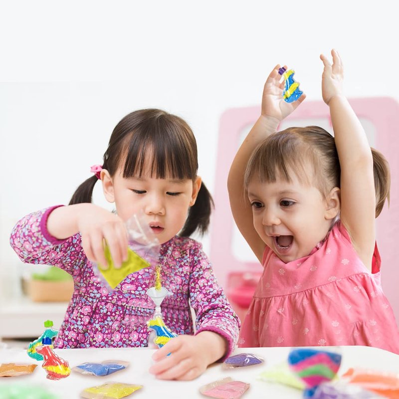 and taste by filling them with colored sand of their choice! This means hours of fun filled with social interaction, creative thinking, and lots of smiles.
