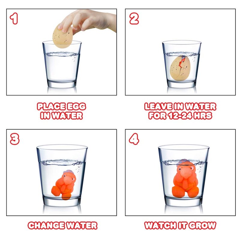 and a great addition to that science class. Just submerge them in water and watch the magic happen. After 12-24 hours, they hatch to reveal a dinosaur in either