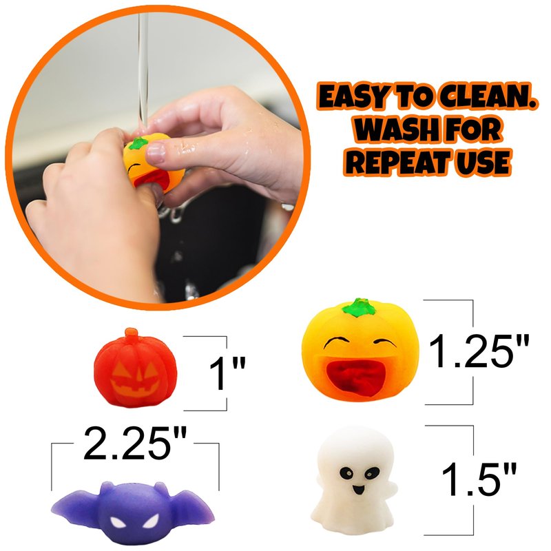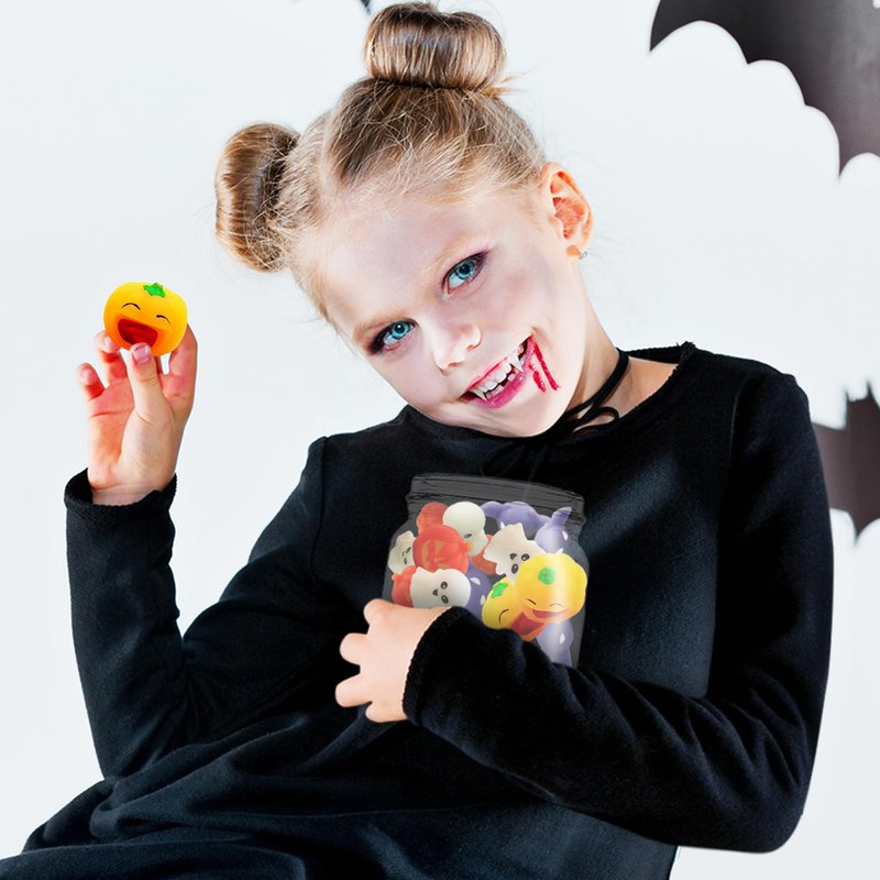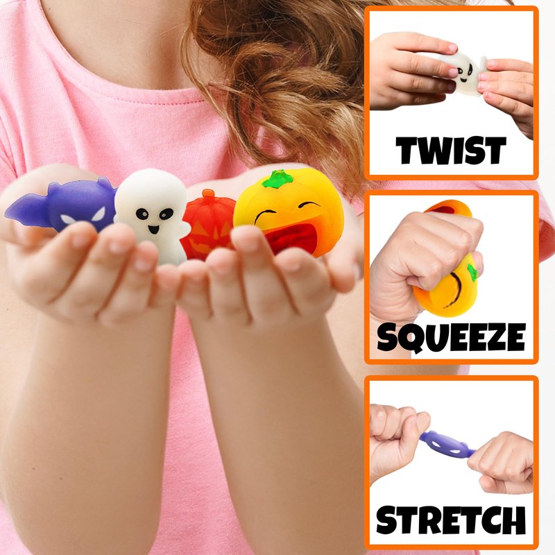 - SPOOKY SQUEEZIES: Spookiness has never felt this good! Delightfully cute with just the right amount of creepiness, this SET OF 24 Halloween squeeze toys for kids is sure to please. When boredom or anxiety threatens to emerge, a good squeeze sends them scurrying away.
