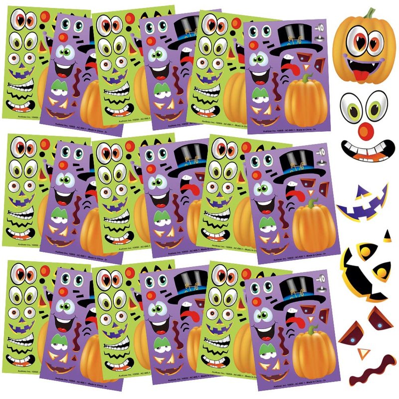 ArtCreativity Make Your Own Jack-O-Lantern Face Sticker Set - 36 Sheets - Customizable Halloween Stickers for Kids, Fun Crafts Classroom Activity, Best for Halloween Party Favors, Goodie Bag Fillers