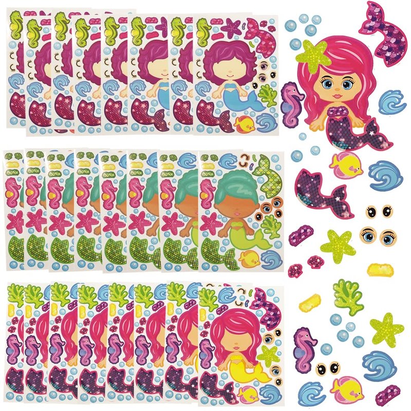 - UNLEASH THEIR CREATIVITY: Design your own mermaid with these customizable stickers! Every sticker sheet comes with a mermaid and a variety of eyes, fins, tops, shells, and star fishes in vibrant colors. Mix them up to create smile-sparking creations.
