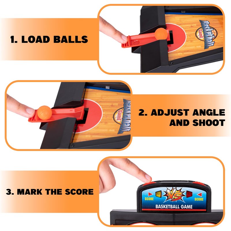 - AWESOME ARCADE FUN: A classic arcade basketball shooting game that fits on a tabletop! This set comes with 1 desktop basketball game and 6 miniature basketballs. Set it up on your office desk or tabletop at home and keep boredom at bay with every shot.