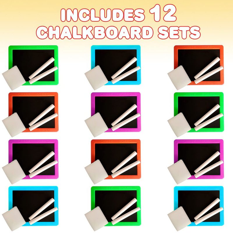 - NURTURE THEIR CREATIVITY: A cute canvas to complement all that creative energy! This set of 12 chalkboard sets is a creativity-sparking treat for any kiddo. Every set includes a 5” x 4” mini chalk board, 2 sticks of chalk, and an eraser. Dish them out and watch the imagination run wild.
