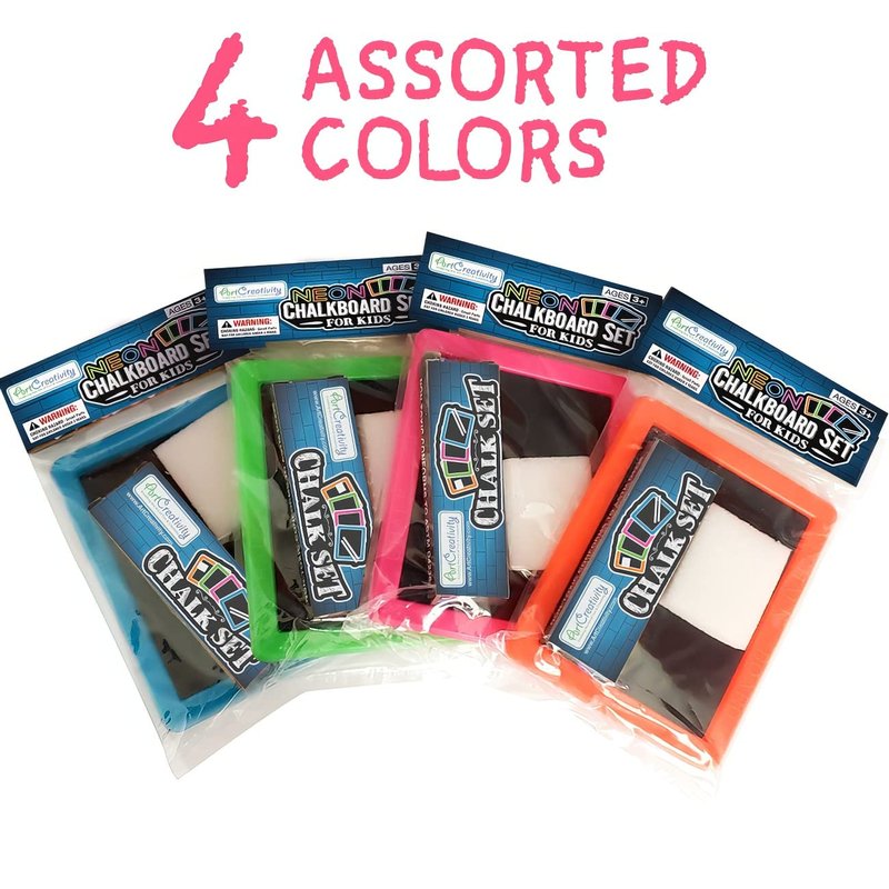 ArtCreativity Neon Chalkboard Set for Kids - 12 Kits - 1 Mini Chalk Board, 2 Chalk Sticks, and 1 Eraser Per Kit - Art Birthday Party Favors for Boys and Girls, Unique Stationery Goodie Bag Fillers