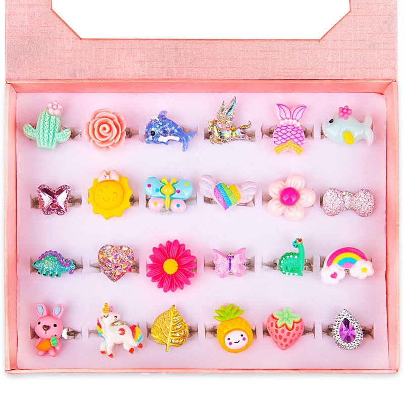 ArtCreativity Rings For Girls 24 Adjustable, No Duplication Kids Rings in Gift Box, Girl Dress Up Jewelry, Toys For Girls, Toddler Girl Gifts, Birthday Gifts, Stocking Stuffers For Kids, Party Favors For Kids 3 4 5 6 7 8 9 10 11 12 Year Old