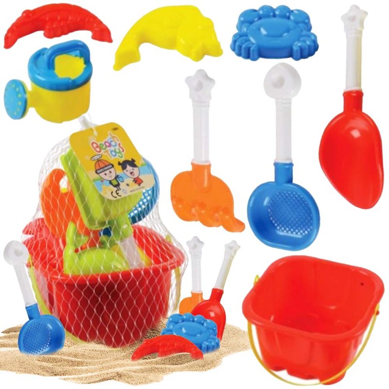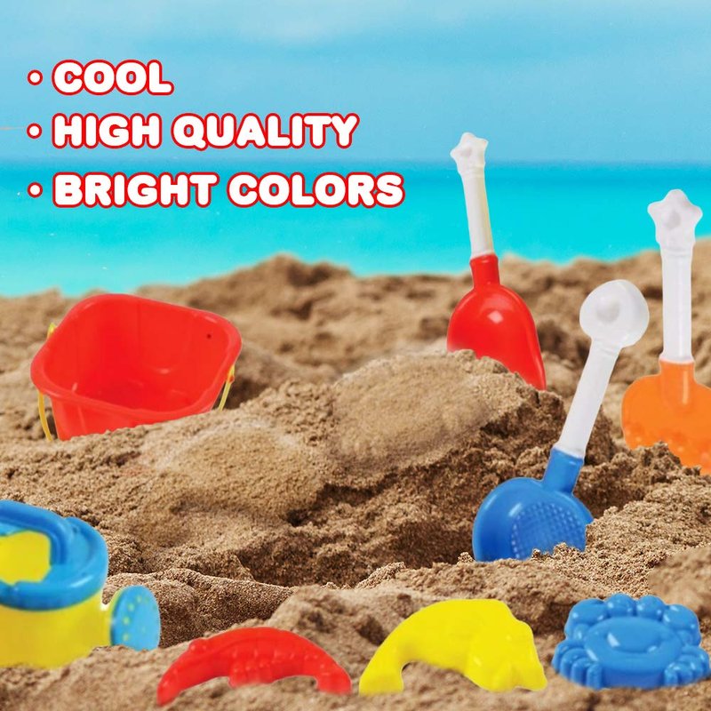 ✔Includes 1 bucket, 3 molds, 2 shovels, 1 rake, and 1 water pot.