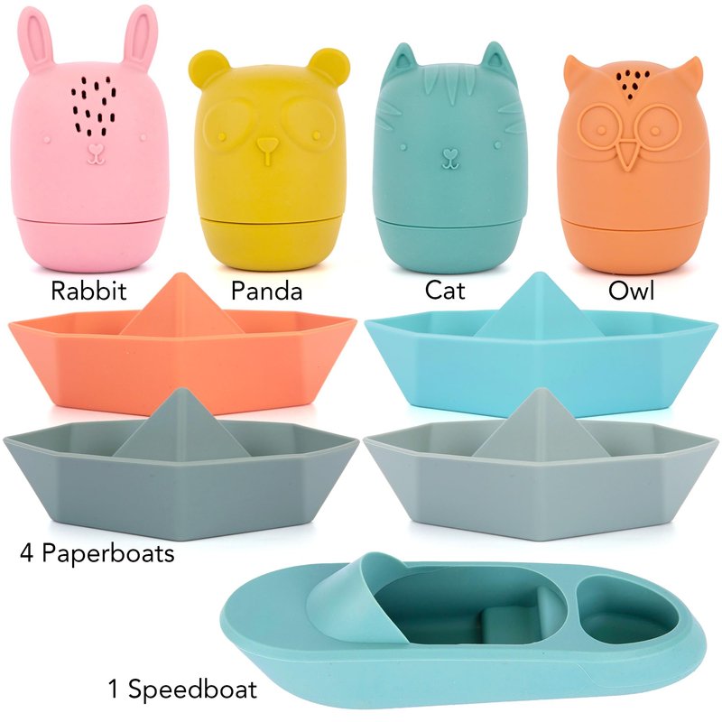 - VARIETY THEY’LL LOVE: We’ve included an assortment of designs to inspire awesome adventures come bathtime. You’ll receive 4 animal bath toys and 5 boats (1 in a speedboat design and 4 that resemble classic paper boats)
