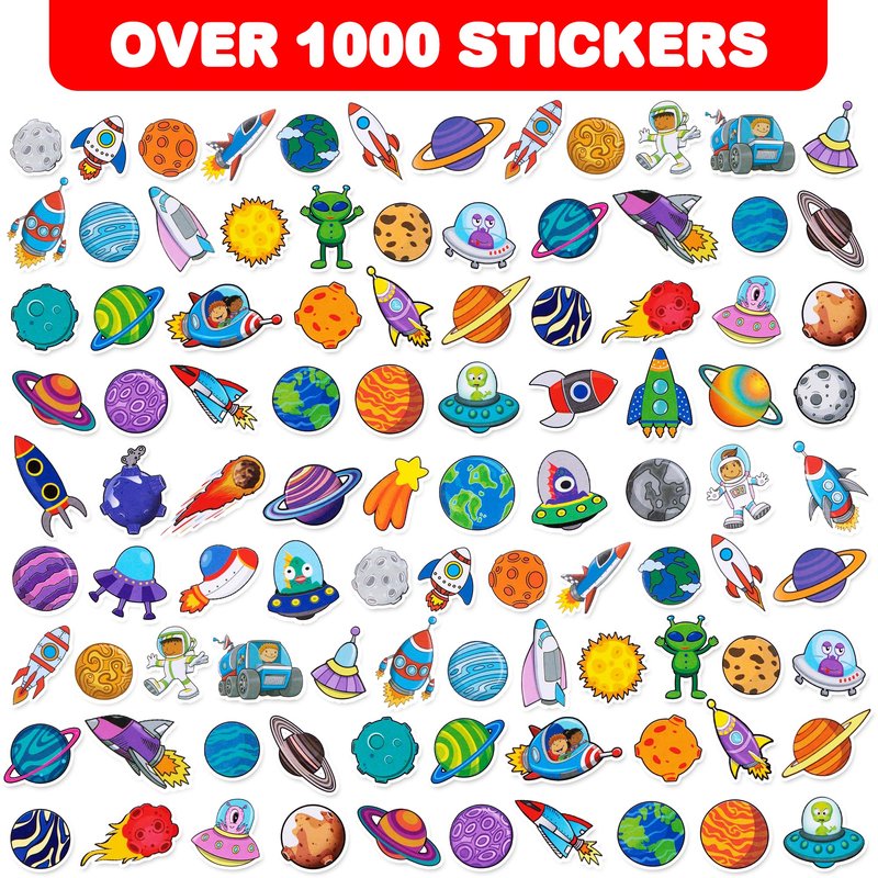 ArtCreativity Space Stickers for Kids, Over 1000 Bulk Stickers, Kids’ Arts & Crafts Supplies, Great Space Party Favors, Goodie Bag Fillers for Kids - Assorted Space Themed Stickers for Boys & Girls