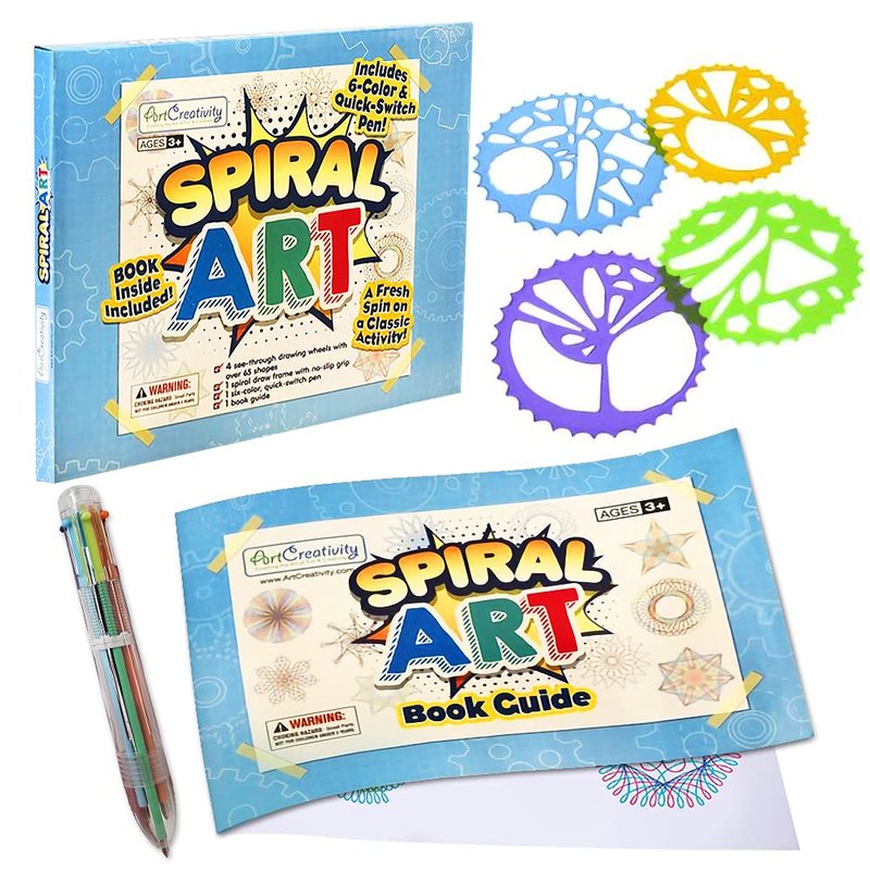 ArtCreativity Spiral Drawing Art Set for Kids - 7 Piece Kit - Includes 6-in-1 Color Pen, Drawing Templates and Sketching Pad - Unique Arts and Craft Supplies - Great Gift for Boys and Girls