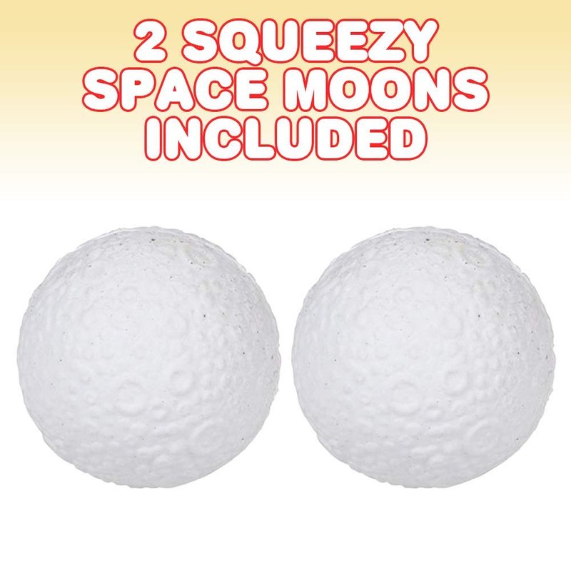 stress relief toys will have both kids and adults beaming. Every pack includes 2 squeezy moons, each measuring 2.5” and designed with a texture so realistic, colored in