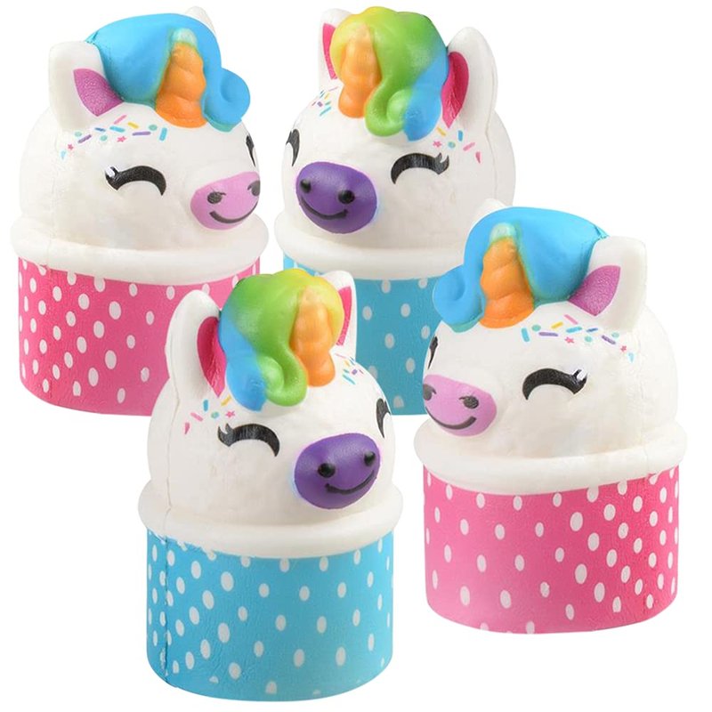 When boredom creeps in, anxiety rears its ugly head, or stress starts to get the better of you, these squish unicorn ice cream scoop toys are just what you need to turn that frown upside down! Every pack comes with a SET OF 4 squish toys, each measuring 4” tall. Squeeze them and delight in the feel of the super-soft slow-rising material. Great for kids and a treat for adults, these squishy fidget toys are a surefire crowd-pleaser.