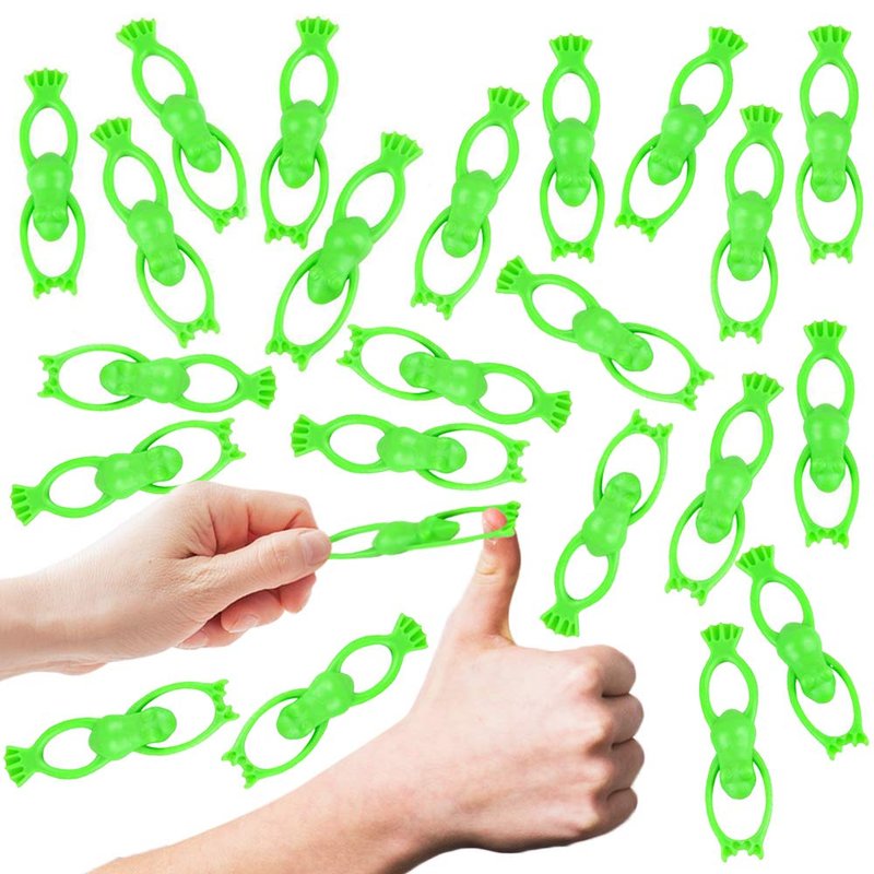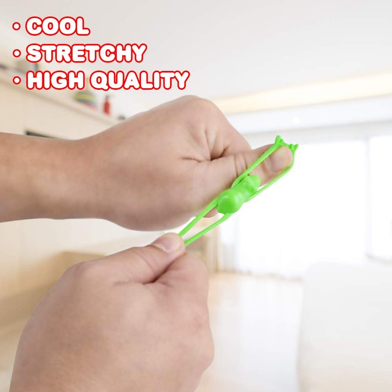 - STRETCH TO SHOOT: Toy frogs with sky-high ambitions! This pack comes with a SET OF 24 fling shot animal toys for memorable outdoor fun. Stretch a rubbery frog on your fingers, aim, and shoot. Little boys and girls won’t get enough of them.