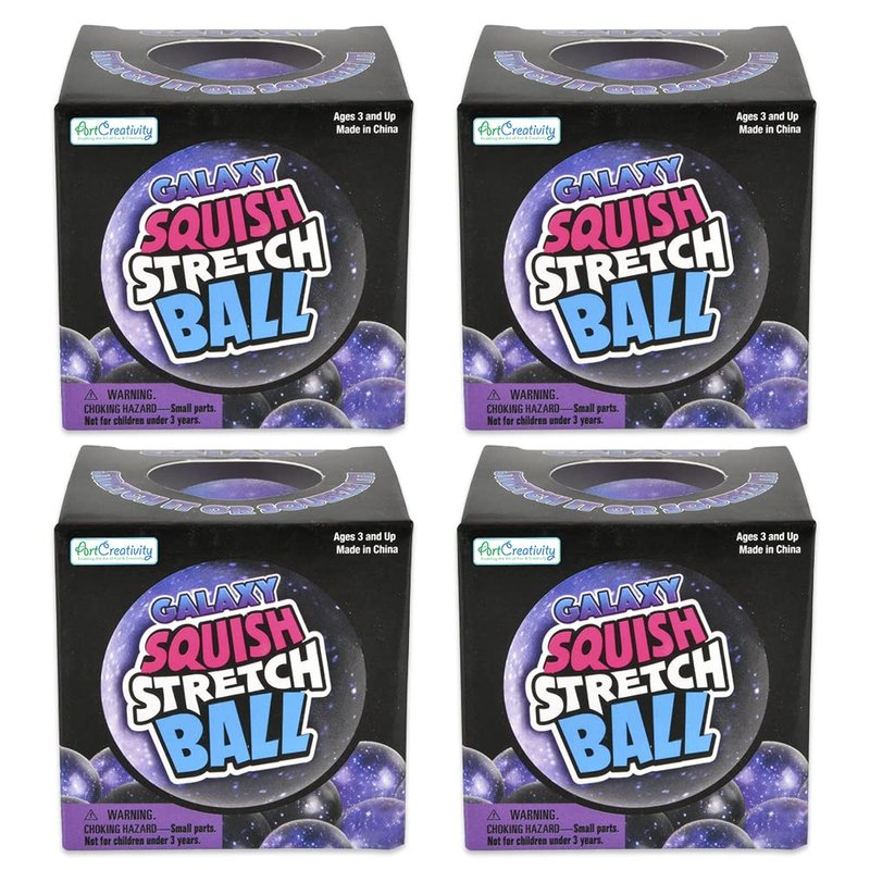 - PACK OF 4: Get the best bang for your buck while inspiring lots of smiles. This pack comes with a SET OF 4 galaxy balls with a cosmic-inspired design. We’ve used high-quality stretchy material that springs back into shape every time.