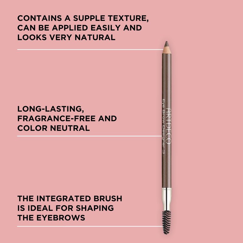 - FEATURES: The Eye Brow Designer contains a supple texture, can be applied easily and looks very natural. It is long-lasting, fragrance-free and color neutral.