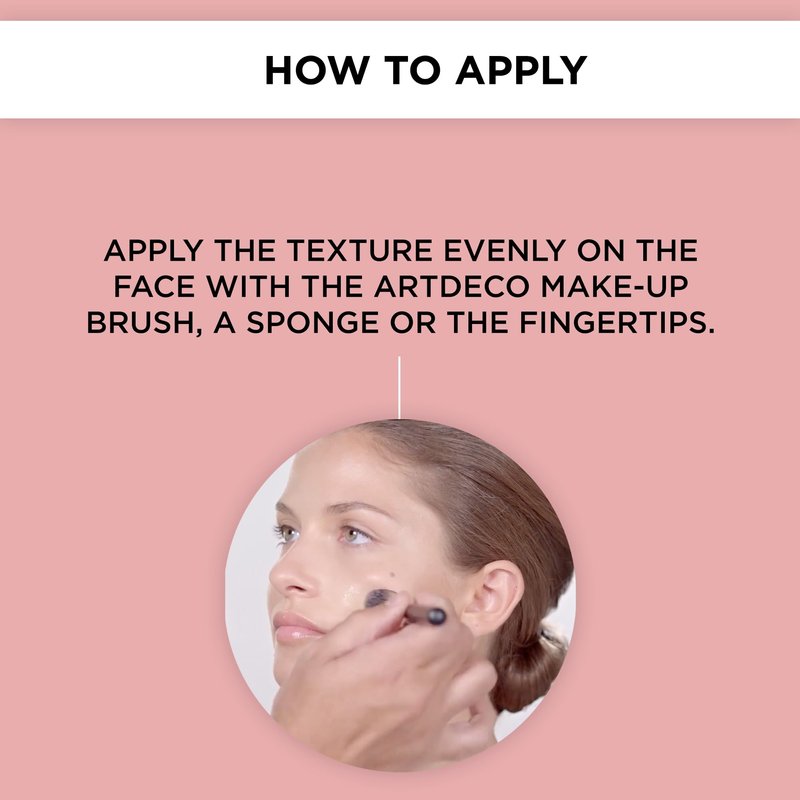 - APPLICATION: After applying day cream, use an ARTDECO makeup brush, sponge, or your fingertips to apply an even layer of the foundation to the face. Please note: The UV filters in this product do not provide sufficient sun protection. Please use additional protection in strong sunlight.