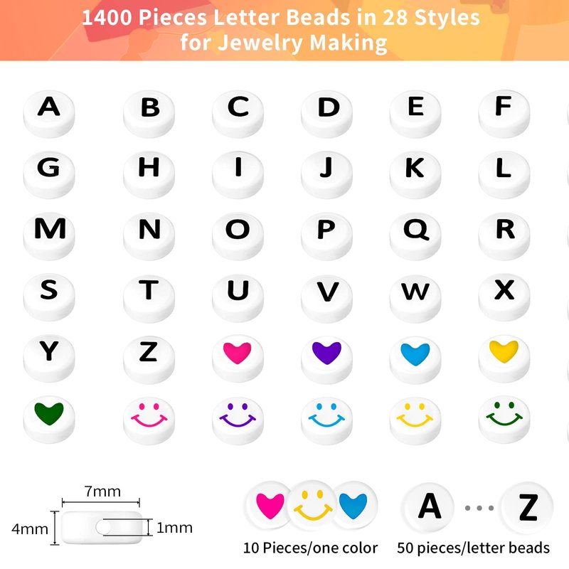 ARTDOT 1400 Pieces Letter Beads Kit, 28 Styles Alphabet Beads Colorful Smiley Face Beads Heart Beads for Bracelets and Jewelry Making letter beads alphabet beads number beads for friendship bracelets jewelry making kit beads teen girl gifts cute stuff for taylor swift bracelet preppy bulk beads set arts and crafts for girls charms smiley face heart small round acrylic beads