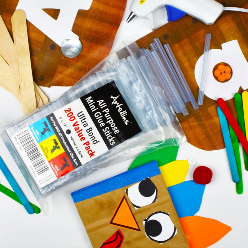 Artellius Mini Hot Glue Sticks (HUGE BULK PACK of 200) 4" and 0.27 Diameter - Compatible with Most Glue Guns