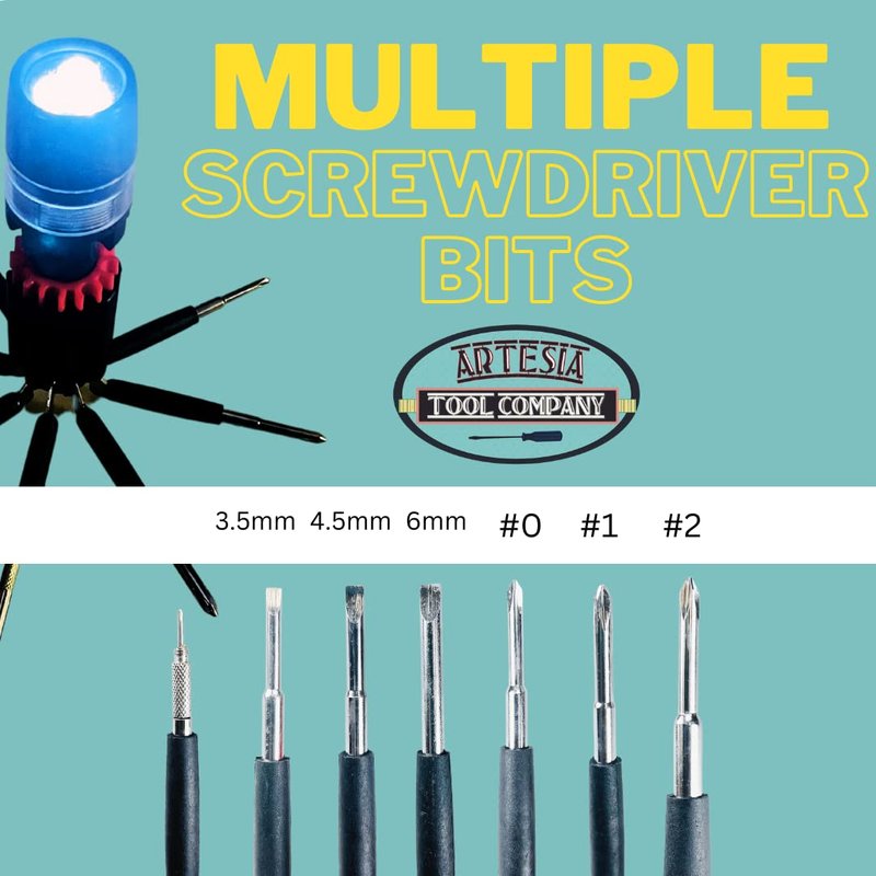 ARTESIA TOOL 8-in-1 Multipurpose Flashlight & Screwdrivers | 6" (15.2 cm) Length | 3 Phillips & 3 Slotted | Dual-Ended Precision Tool | 4 LED Lights | 2 "AAA" Batteries Required (Not Included)