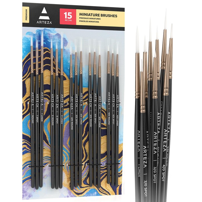 Arteza Detail Paint Brushes, Set of 15, Fine Detail Brush Set for Miniature Models and Canvases, Synthetic Bristles, Small Paint Brushes for Details, Fine Lines, and Shading