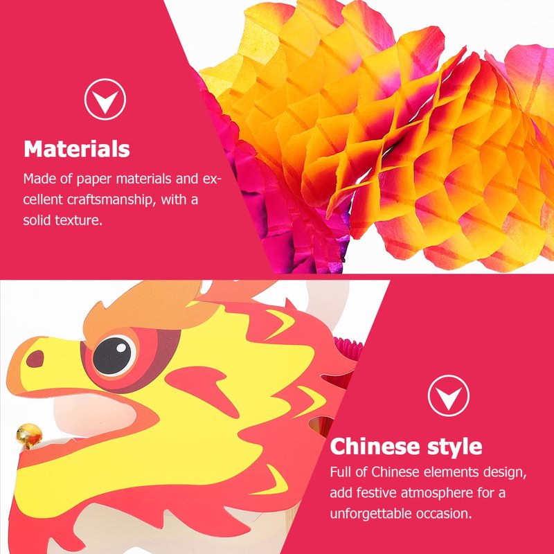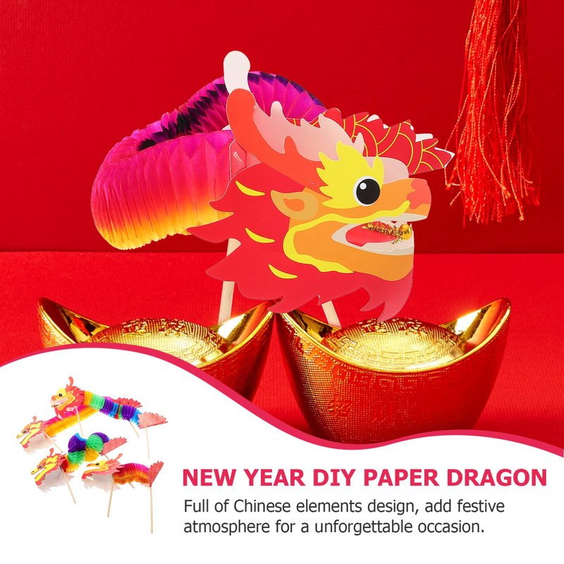 ARTIBETTER 4 Sets of Chinese Paper Dragon Pick New Year Dragon Garland Banner DIY Paper Dragon Pull String Puppet Vintage Toy for Kids DIY 3D Paper Chinese Dragon 2022 Spring Festival Party Supplies