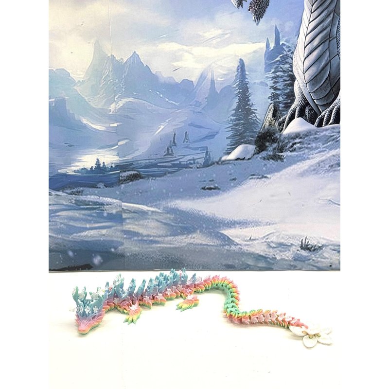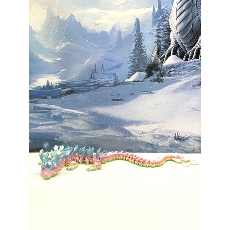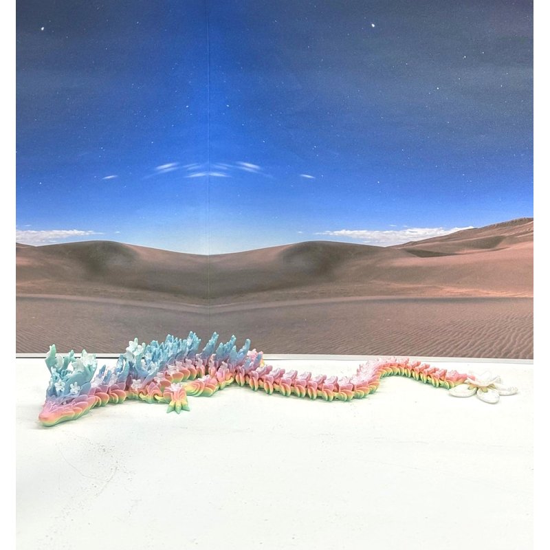 3D Printed enchanting Articulated Cherry Blossom Dragon - a mystical creature that brings a touch of fantasy to your world. Unveil the mystery of this Rainbow Cherry Blossom Dragon ( measures 12" long) a captivating fusion of elegance and fantasy. Encased within a meticulously designed crystal egg, this tiny dragon reveals itself with a symphony of colors - a testament to its magical heritage. ------- Small Components Advisory: ------- Please note that this product may contain small components and might not be suitable for very young children. Given the characteristics of 3D printing, there is a potential for small components to detach if handled aggressively or dropped. Therefore, we advise against allowing younger children to interact with the dragon. Please consider that 3D printed objects might include minor imperfections such as layer lines. These are a natural and inherent aspect of the printing process. We strive to produce the highest quality items, and these imperfections contribute to the unique character of each piece. Recall the unique creation of each dragon, crafted exclusively for you. The color selections available are depicted in the provided photos. Please be aware that variations in color may occur due to discrepancies in filament production and the characteristics of the monitor or screen you are utilizing to view the listing. Additionally, the arrangement of prints using multi-colored filament rolls can influence color distribution. ------- Licensing Information: ------- Authorized Design: NOHo3D holds the official authorization for the production of this exquisite design created by CinderWing3D.