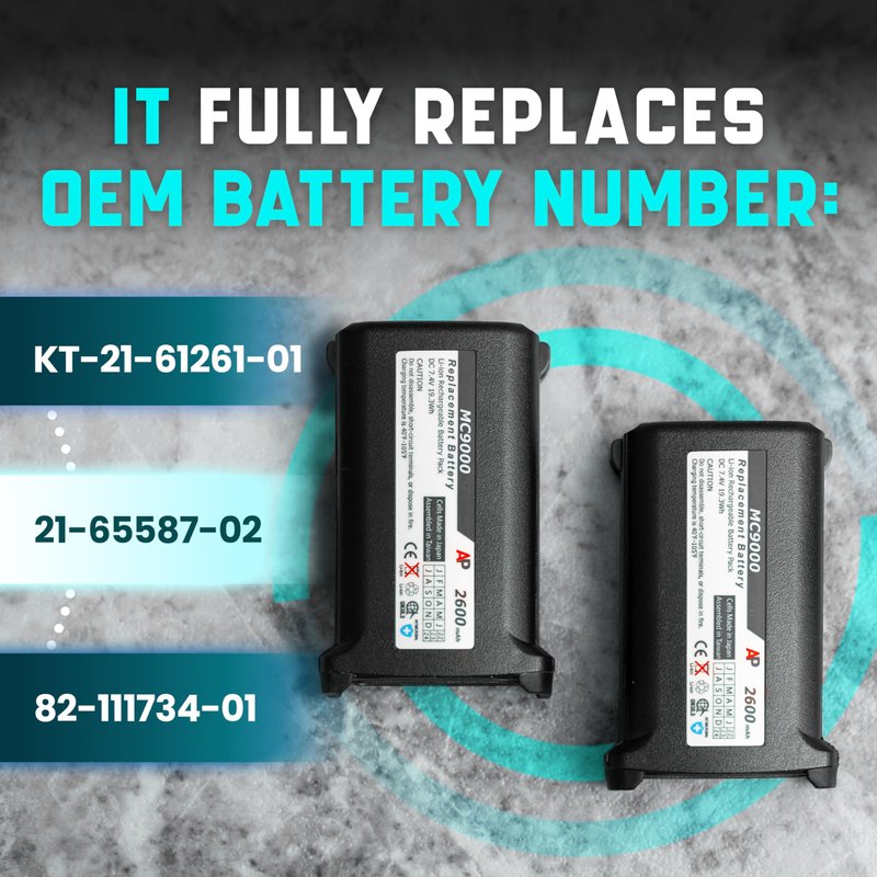 - COMPATIBILITY: This replacement battery is a perfect match for your MC9000-G/K, MC9060-G/K, MC9090-G/K, MC9097-G/K, MC9190-G/K, and MC9200-G/K barcode scanners. It fully replaces the OEM battery numbers KT-21-61261-01 and 21-65587-02.