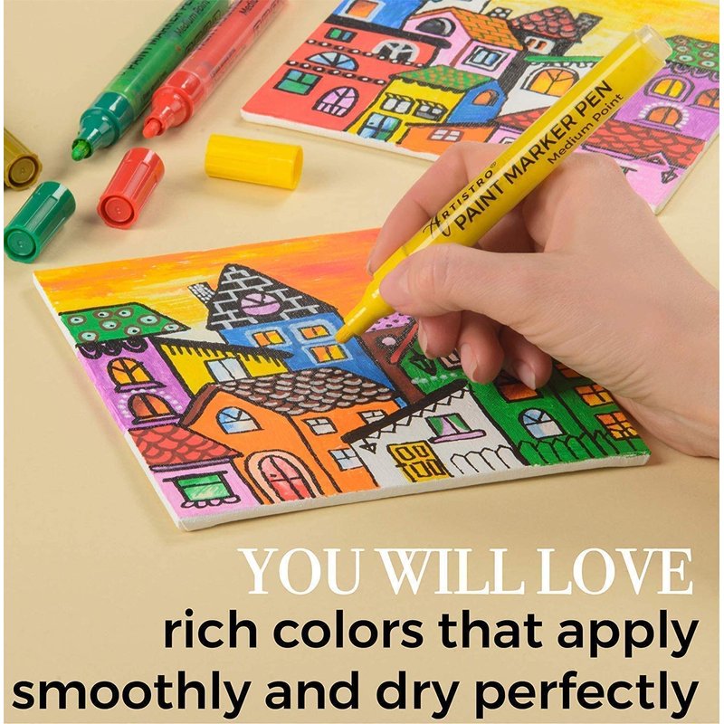 ARTISTRO 12 Acrylic Paint Pens for Fabric, Canvas, Rock, Glass, Wood - 3mm Medium Tip Paint Markers-Ideal Art Supplies for Adults and Kids