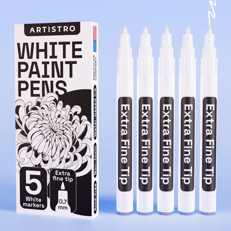 - 0.7 mm Extra Fine Tip: Use our fine tip paint pen to highlight details in your art. The white paint pen fine tip is great for touch ups. Create masterpieces with these white pens for art.