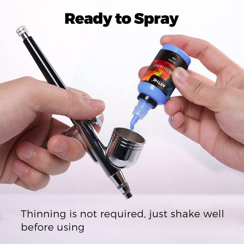 - READY TO SPRAY: ARTME airbrush paint uses better formula with proper ratio. Every airbrush color has wonderful airbrush flow characteristics. They can match well with your airbrush with a smooth consistency and won’t clog it up. Thinning is not required.