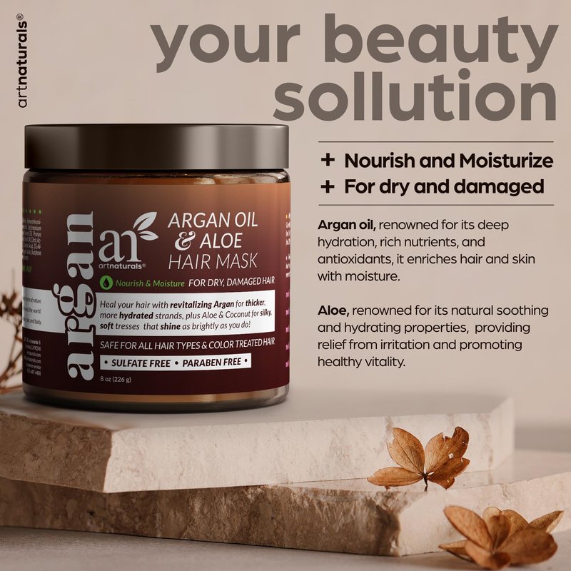 Artnaturals Argan Hair Mask Conditioner - (8 Oz/226g) - Deep Conditioning Treatment - Organic Jojoba Oil, Aloe Vera & Keratin - Repair Dry, Damaged, Color Treated, Natural Hair Growth - Sulfate Free