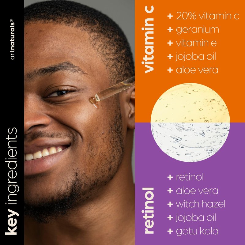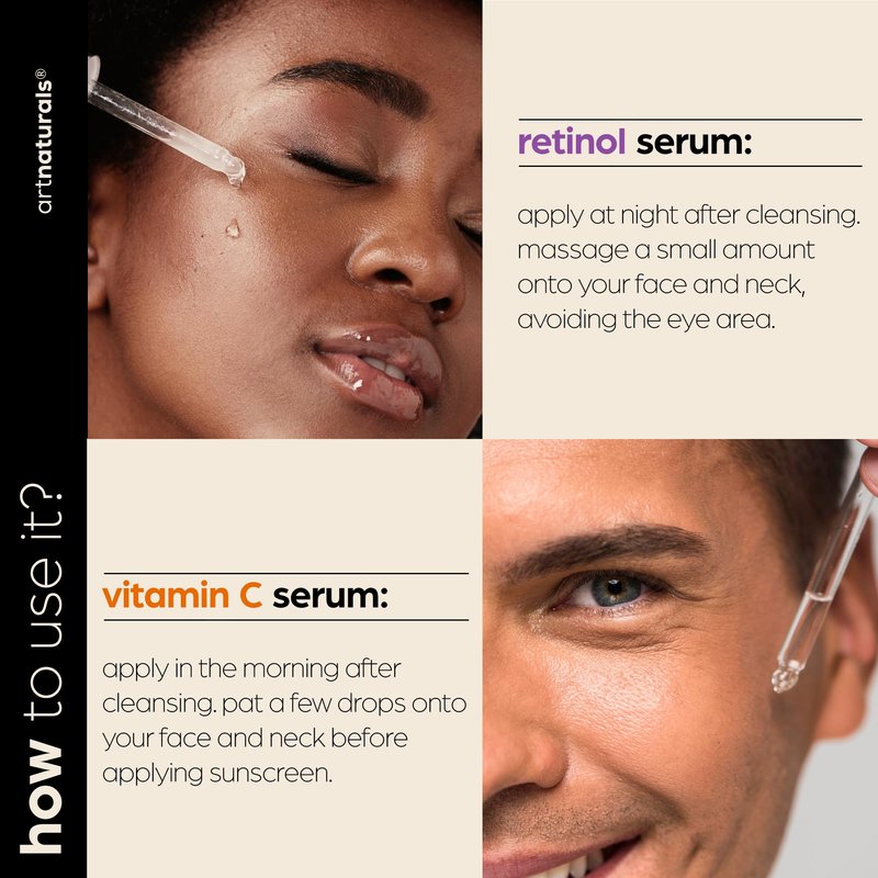 - Set includes 1-oz. sizes of ArtNaturals Vitamin C Serum and Retinol Serum.