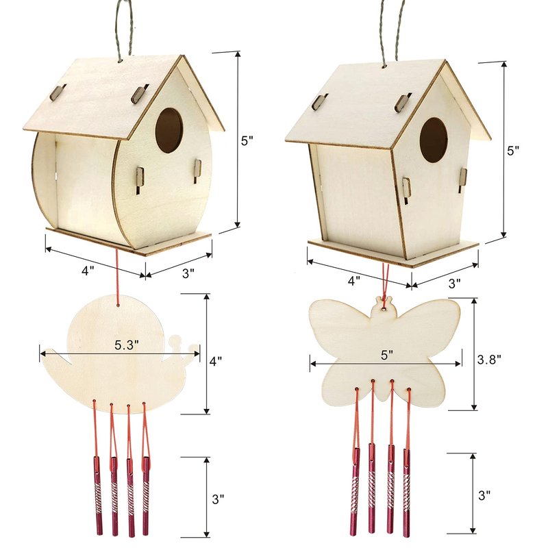 - Value DIY Set: This arts and crafts kits include 2 pack wooden bird houses, 2 pack wind chimes, 2x6 paints, 2 brushes and 1 assembly instructions, all of them are packed in a colorful box. Use them to build, to paint, that's enough for your kids to create