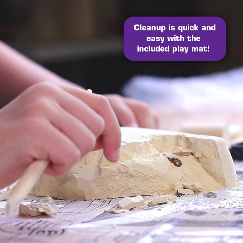 - Mess-Free Play Mat: Keep your play area neat and clean with the included mat. Place your gem dig kit block and tools in the designated areas on the mat before getting to work.