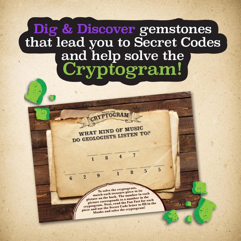 - Fun Facts & Treasure Hunt: Learn fun facts about the hidden gemstones and crystals buried inside each block as you use them solve the cryptogram.