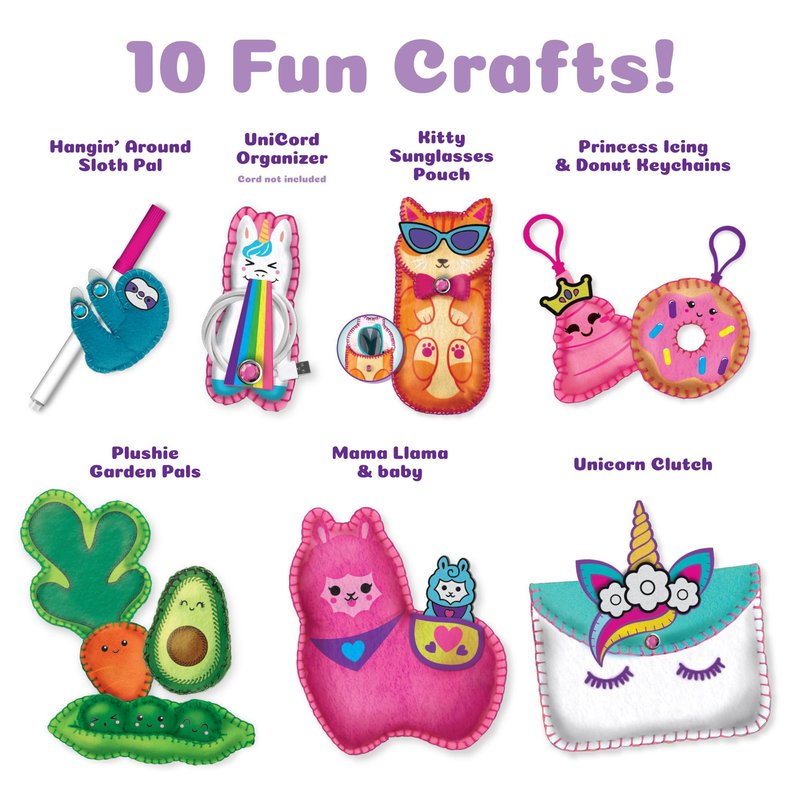 - Easy Crafts for Kids: All sewing projects come with pre-cut and pre-punched felt pieces that make for easy sewing for kids as they stitch their crafts together.