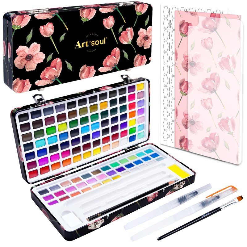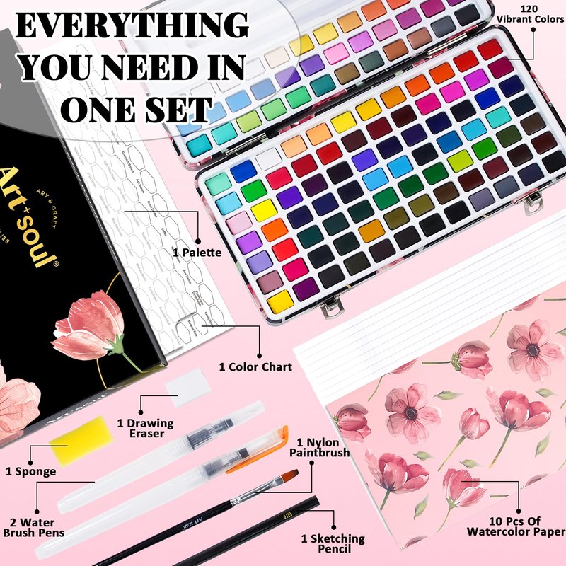 Art+soul 120 Rich Colors Selection, Watercolor Paint Set - Portable Design for Travelers, Painting Enthusiasts and Professional Artists, Art Supplies